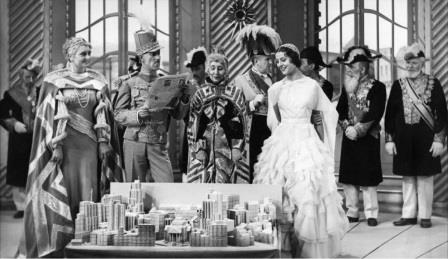 カジノ立国という無謀な計画が頓挫し財政破綻したヨーロッパの小国・カジナリオ。世界的富豪のバンコ氏に援助を求めると、王女・イザベルとの結婚を要求、自ら行政長官となり独裁体制を敷いて…。独裁者に振り回される役人たちがドタバタを演じる様が爆笑もの。ルネ・クレールがナチスドイツを徹底的に笑いのめし、独裁国家に警鐘を鳴らした政治風刺喜劇の傑作。